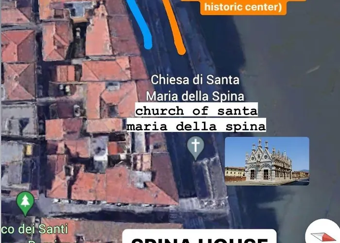 האורחים ימצאו את קייזה די סנטה מריה דלה ספינה בפחות מ-50 מטר מהנכס, בזמן שפאלאצו בלו נמצא במרחק של 250 מטר משם. מרכז העיר של פיזה זה בסביבות ה-5 דקות הליכה משם. Osteria Pizzeria Alla Goccia מפנקת את האורחים עם מנות ים התיכוניות ונמצאת בסביבות ה-150 מטר משם. שדה תעופה הקרוב הוא הבינלאומי פיזה, במרחק של 5 ק"מ על דירת דירות Centro Storico Spina White House, ותחנת אוטובוס V. Del Brennero - Porta a Lucca זה כ-5 דקות הליכה משם.